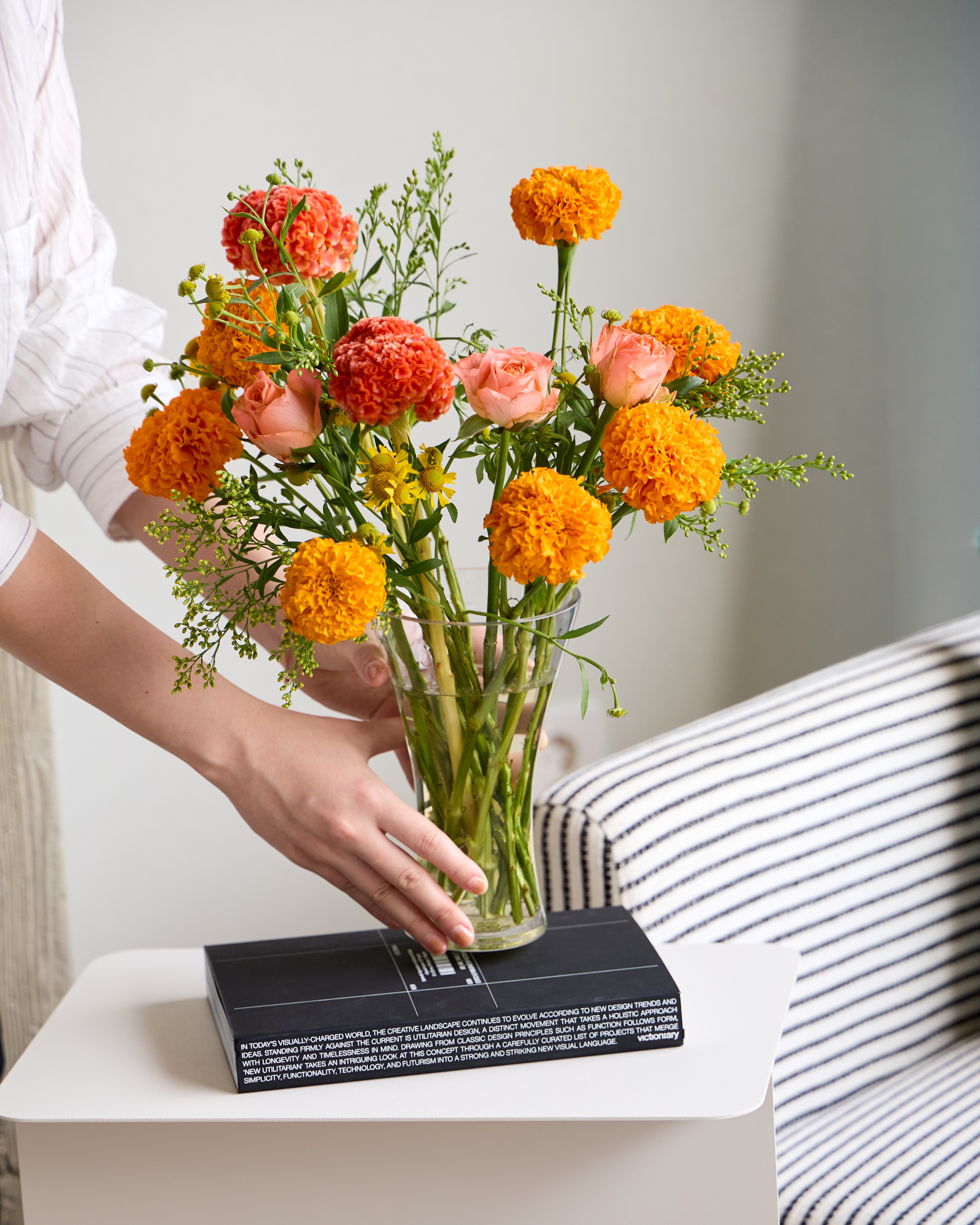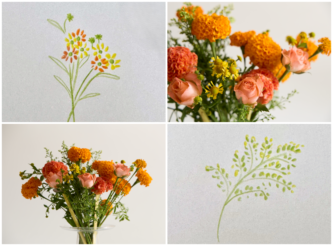 아이스홍시 믹스를 디자인한 플로리스트 선아는 선명하고 강렬한 색감을 꽃으로 표현하고 싶어 노을빛을 닮은 주홍과 코랄 계열을 톤온톤으로 디자인했다고 해요. 한숨 시원해진 저녁 온기에 달콤해진 기분을 홍시꽃으로 전하고싶었던 그녀의 마음이 느껴지나요? |