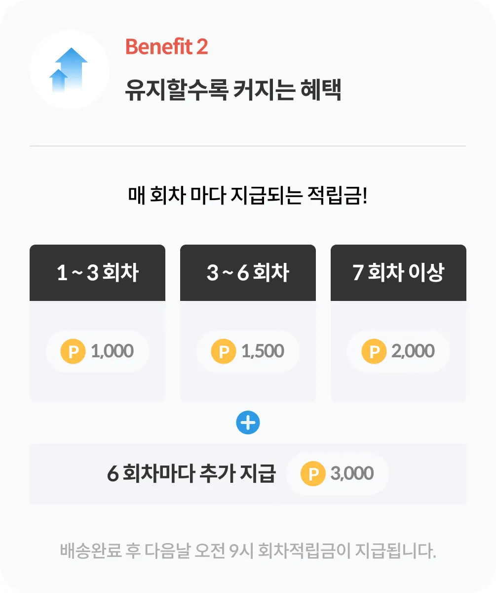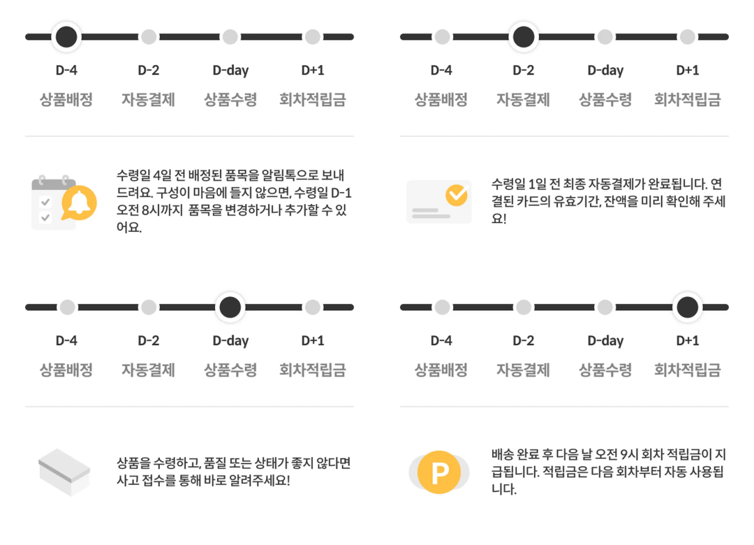 회차 별 할인 및 적립 혜택 강화, 더욱 빠른 배정 상품 알림, 마지막으로 보다 자유롭게 품목 변경 및 추가가 가능하도록 새롭게 개편합니다.