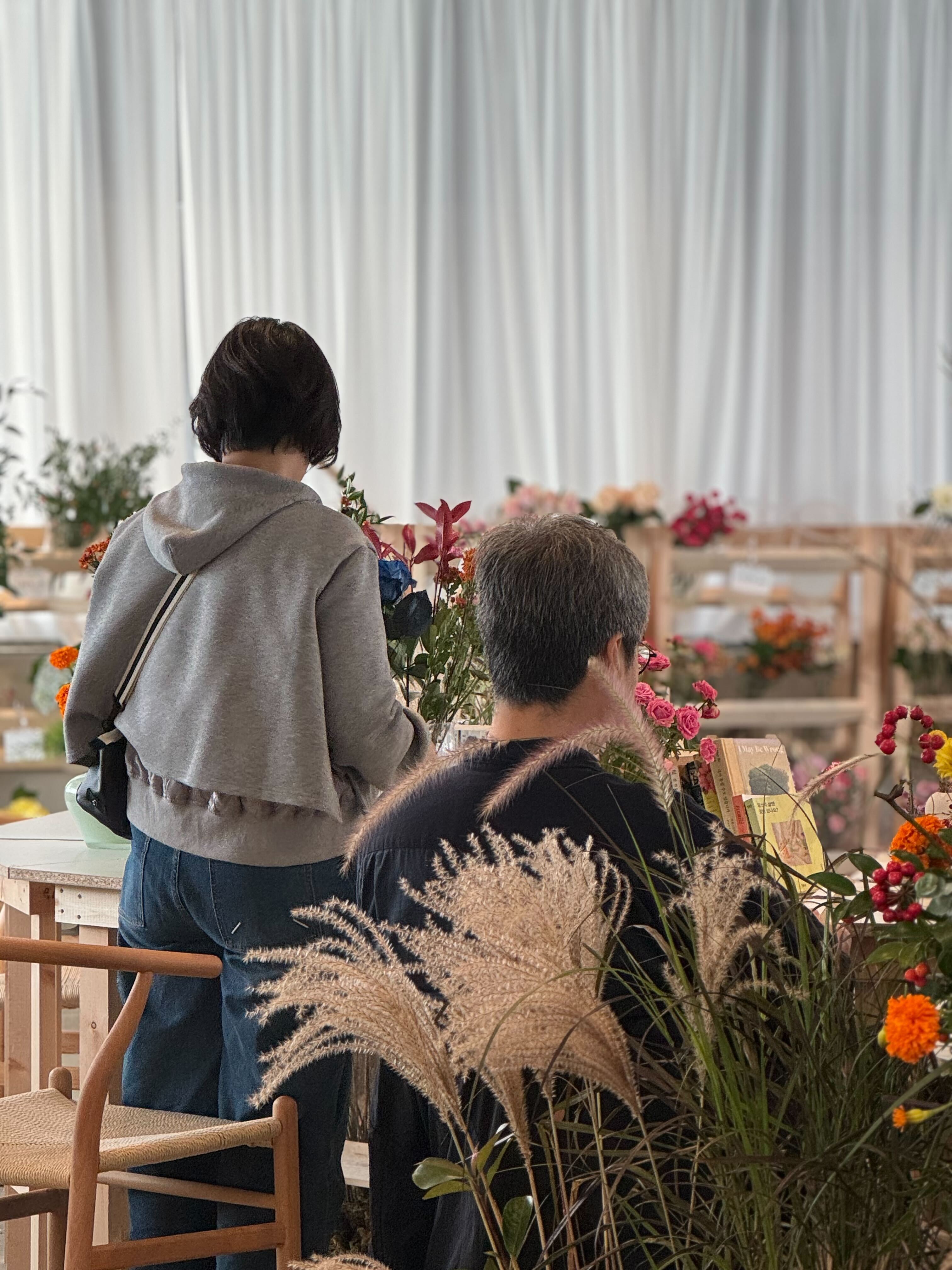 아내와 함께 꽃을 고르고, 꽃을 화병에 이리저리 담아보는 아내를 바라보던 남편분의 눈빛이 기억에 오래 남습니다. 그는 이내 의자에 앉아 책을 폅니다. 본인의 꽃 10송이도 모두 아내의 것입니다. 그가 누리고자 한 것은 꽃이 아닌 '아내의 행복'임이 확실해지는 순간입니다. 그때 그를 닮은 중후한 목소리의 노래가 오디오에서 흘러나옵니다. 그 아침, 부부의 아늑한 시간이 완성됩니다. |